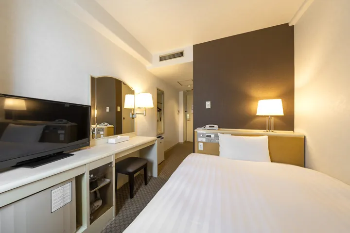 路面電車が走る桃太郎大通りに面したビジネスホテル。観光にも最適です。